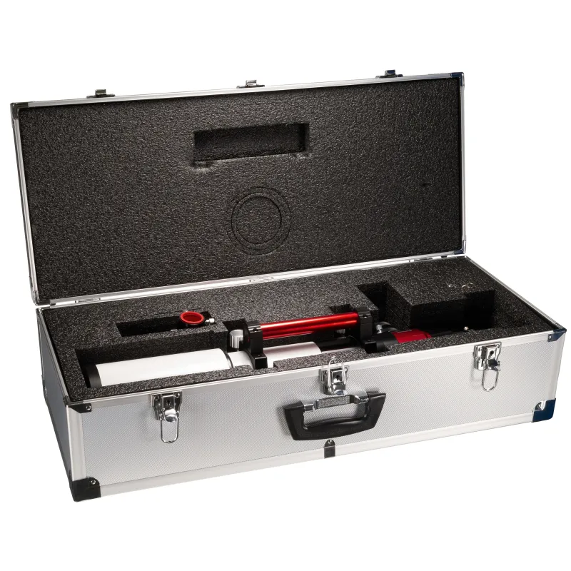 Modular designed multipurpose telescope, both for observing the sun in the H-alpha wavelength, as well as for night sky observations. Easy conversion between the different applications with a few simple steps. 3-lens apochromatic telescope with FPL-53 glass, 100mm aperture and 714mm focal length - excellent image quality for H-Alpha solar observation and also for observing the starry sky at night .