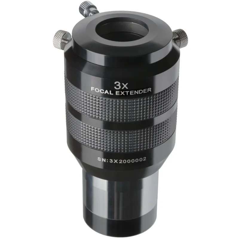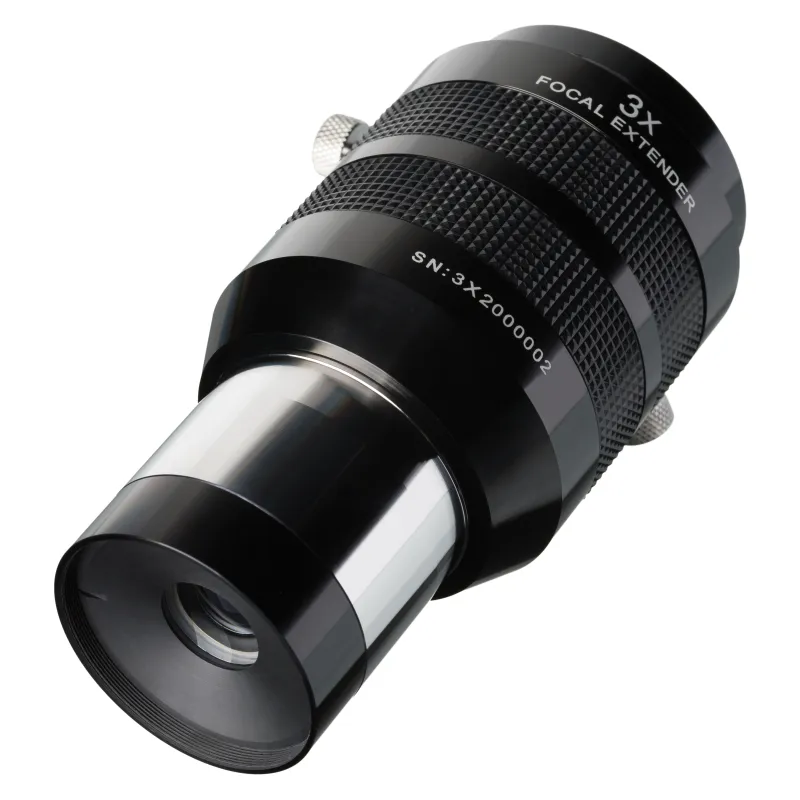 With teleextenders it is possible to extend the effective focal length of a telescope system, resulting in higher magnification for the observation of the moon, the planets or small Deep-Sky objects with the same eyepieces. So you can use the advantages of eyepieces with longer focal length - such as the bigger eye distance and the more relaxed observing comfort - at high magnifications also. These teleextenders incorporate a telecentric optical design that deliveres a excellent image sharpness over the whole field of view and are premium choices for visual observations and astrophotography. The combination of excellent fully multicoating with superior optical design makes the Focal Extenders superior to classic Barlow lenses.