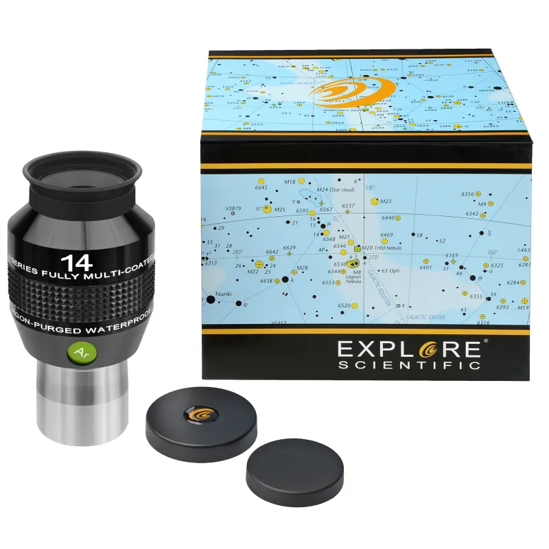 Explore Scientific 82° Series™ extreme wide field eyepieces are optimized to produce high contrast, high resolution, and superior flat field characteristics.