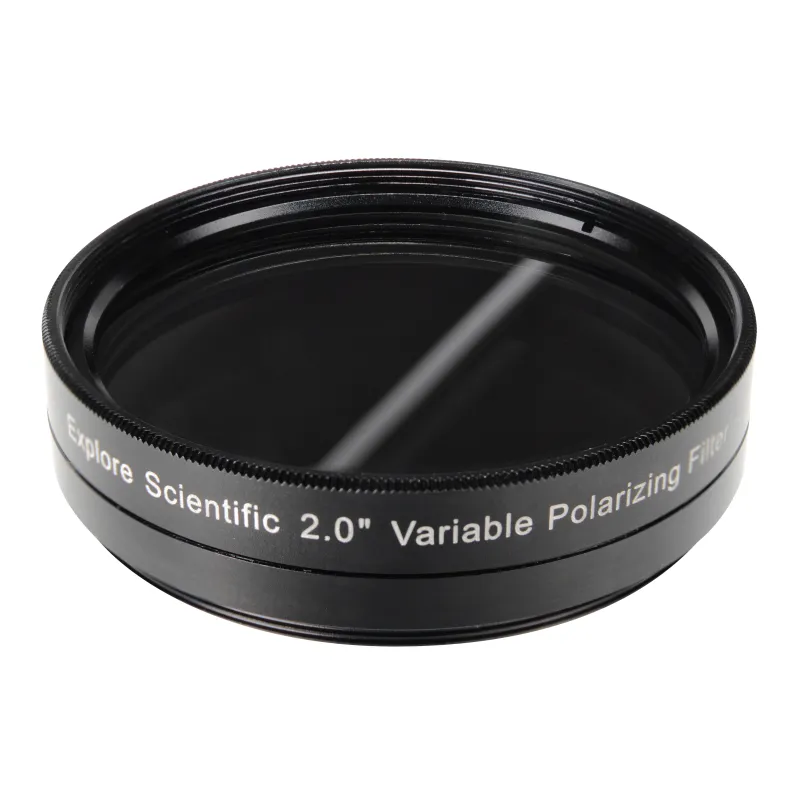 Universally usable variable polarizing filter with a 2" filter thread . This variable polarizing filter allows for a continuous adjustment of the image brightness . This is very helpful to level strong differences in contrast of different observation objects individually. Particularly for lunar and planetary observations but also for solar observations this filter prevents an outshining of details.