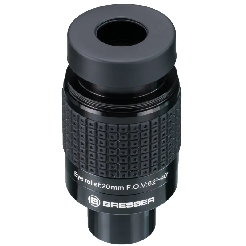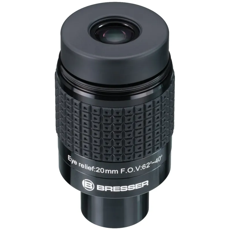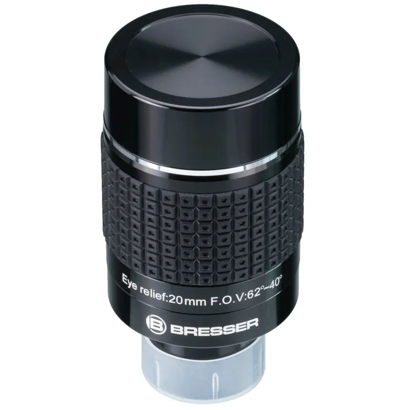 Comfortable viewing The BRESSER Zoom Eyepiece Deluxe offers a large comfortable eye relief (LER) of 20 mm to the eyepiece lens. This means a comfortable view even during longer observation, an important criterion especially for people wearing glasses. The rubber eyecup can also be individually adjusted by a twisting movement.
