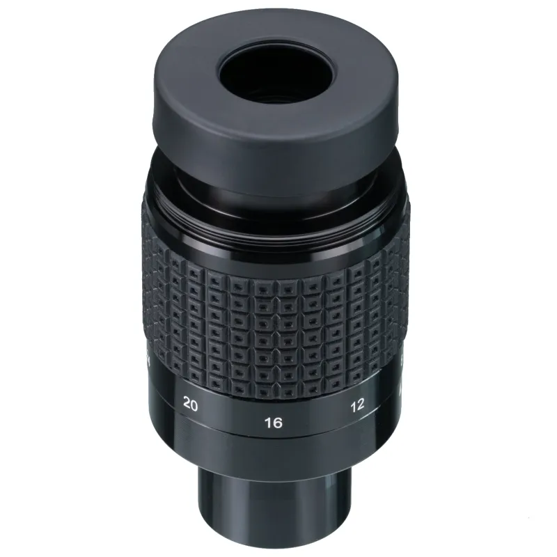 One eyepiece for every occasion, with very good field correction and large field of view. The BRESSER Zoom Eyepiece Deluxe covers the large focal length range from 8 to 24 mm. These are also the focal lengths most frequently used with most telescopes. Especially for instant observations, where you don't want to pack a whole suitcase full of eyepieces, the zoom eyepiece is a good choice. The Deluxe version offers with its particularly advanced optical design with 9 elements in 6 groups an even better field correction and sharpness, combined with a large apparent field of view of 40 up to 62 degrees.