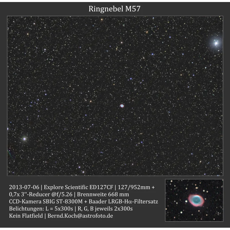 The EXPLORE SCIENTIFIC 3" 0.7x Reducer/corrector, reduces a compatible telescope's focal length by a factor of 0.7x (for around f/8) and 0.8x (for around f/10) respectively. The reducer/corrector not only reduces the focal length but also flattens the field . Although originally developed for the Explore Scientific ED-APOs 127mm and 152mm , the reducer can be used with many systems - for example with the Explore Scientific ED-APOs 102mm and 165mm (please note, this will not work on the Explore Scientific 80mm ED Apo refractors though). With certain telescope focal lengths, a slight restriction of the correction at the edge of the image field can be expected when using full-frame sensors. This unit comes with 3" barrel adaptor for direct focuser thread M54x0.75 (the standard focuser thread of the Explore Scientific Essential series of ED Apos) and T2 camera adaptor. This reducer/corrector features a free aperture of 65mm , so that it can be used even with cameras that have a large sensor - if the telescope allows for this.