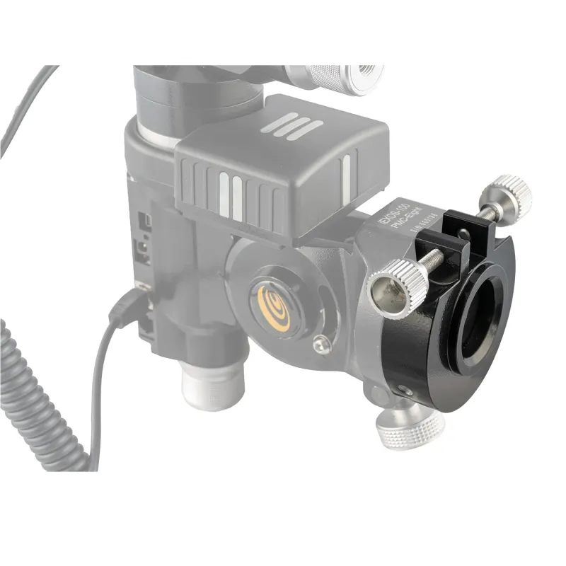The Azimuth Adjuster Adapter is designed for use on the iEXOS-100 tripod , but requires slightly modification of the tripod base. See the manual for details of the required modification. This device allows iEXOS-100 users to make fine azimuth adjustments for precise polar alignment .