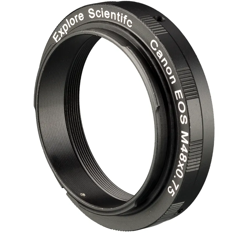 Camera specific bayonet adapter (camera ring) for Canon EOS DSLR with M48x0.75 mm internal thread for astrophotography.
