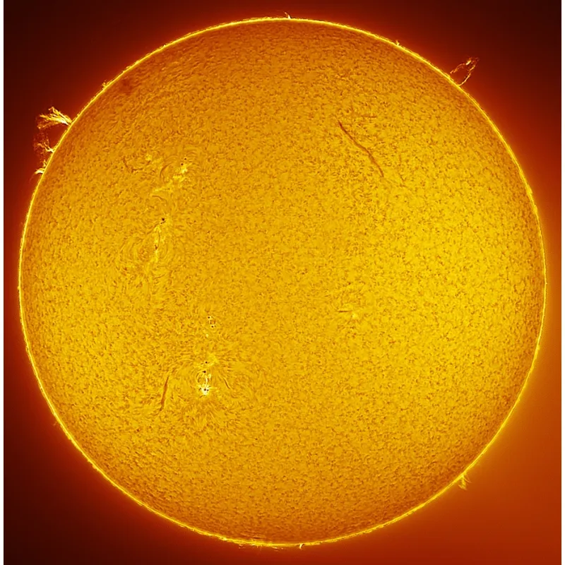 The LS60FHa H-alpha Etalon filter system with 60mm aperture (no central obstruction) for use on any refractor and many other telescopes. Because the LS60FHa has an estimated bandwidth of <0.75 Angstrom it is capable to providing high contrast views of both solar surface and edge detail (prominences). The system includes the B1800 blocking filter, which is usable for telescopes up to 1620mm focal length. Larger blocking filters suitable for longer focal length are also optional available. The blocking filter is installed in a 90° star diagonal for 1.25" focuser. This diagonal is equipped with a reception for 1.25" eyepieces and a T2 camera connection.