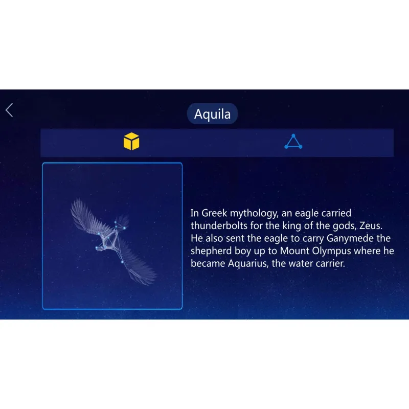 Jums nav jāuztraucas par objektu atrašanu pašiem - papildinātās realitātes lietotne jūs vadīs pa nakts debesīm. Pēc AR lietotnes iestatīšanas vienkārši pievienojiet viedtālruni viedtālruņa adapterim bērnu teleskopā. AR režīmā viedtālrunis rādīs to zvaigznāju nosaukumus un attēlus, uz kuriem pašlaik ir vērsts teleskops, ļaujot jums viegli pārvietoties starp planētām un zvaigznājiem un atklāt interesantus objektus. Izmantojot papildinātās realitātes foto funkciju, varat uzņemt dažus momentuzņēmumus, pirms kārtīgi ieskatīties okulārā.