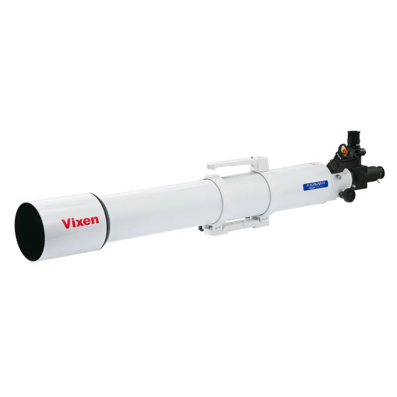 This high-quality refractor features a 105 mm achromatic lens. It produces impressive images of the moon’s craters and Saturn’s ring system. The long F9.5 aperture ratio delivers an optimal contrast and ensures that colour deviations are kept to a minimum. The telescope is made in Japan using cutting-edge manufacturing processes. Highly recommended for beginners and advanced observers who value quality and excellent workmanship.