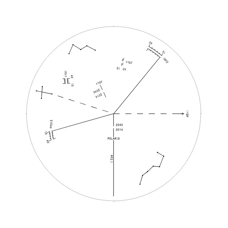 Vixen’s latest design of polar finder , allows a simple, hassle-free method of polar alignment. The Vixen Polarscope PF-L II for AP & SX mounts has a reticule showing the Pole star (Polaris) and two other stars (Delta UMi and 51 Cep) in their precise positions. By turning the Polarscope you can easily match the reticle with the asterism of these stars in the sky and mechanically adjust your mount’s azimuth and altitude axes to align to the true North Pole . You can then adjust the Polar star to a more precise alignment using the reticule’s year marking (which runs from 2015 to 2040, but in practise can be used much longer after this) .