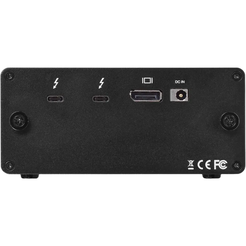 **Displeja ports ** Displeja pieslēguma elastība ir jūsu rīcībā ar ērto DisplayPort, kas atrodas tieši OWC Express 4M2 aizmugurē. Nav jāuztraucas par adapteriem vai īpaši gariem kabeļiem. Vienkārši pievienojiet displeju tieši Express 4M2, un viss ir gatavs.