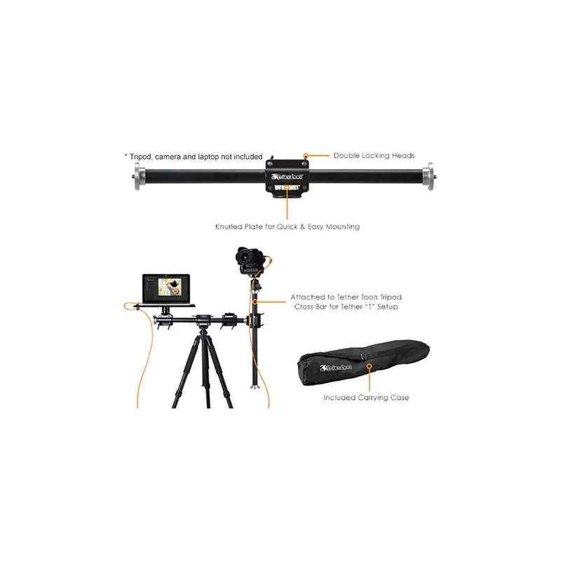 Apvienojiet Rock Solid Cross Bar Side Arm ar Rock Solid Tripod Cross Bar, lai izveidotu Tether T iestatījumu, kas ļauj viegli pielāgot kameru augstumu. Tether T dizains ļauj datoram palikt nemainīgā augstumā, droši nostiprinātam uz Rock Solid Tripod Cross Bar, kamēr Rock Solid Cross Bar Side Arm nodrošina augstuma mainīgu risinājumu, kas ir ideāli piemērots soļu un atkārtojumu fotogrāfiem.