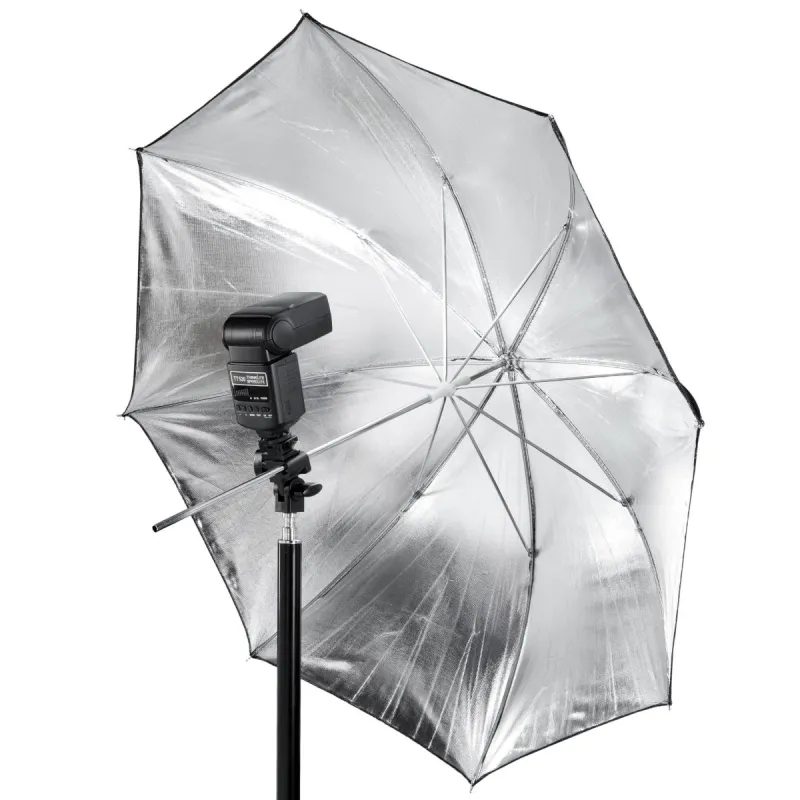 An umbrella bracket with suspension is integrated and allows the use of a translucent or reflex umbrella with your system flash. That way you are even more flexible in your work.