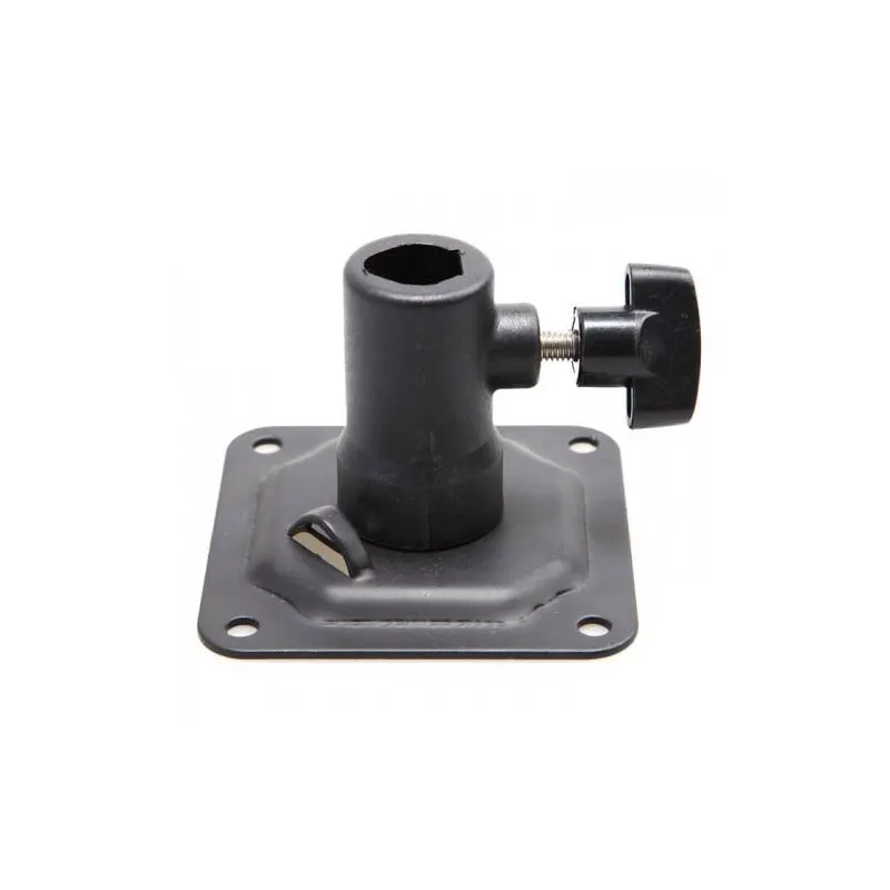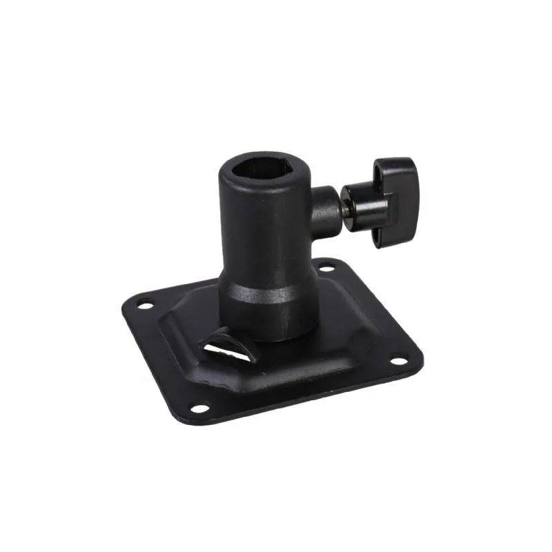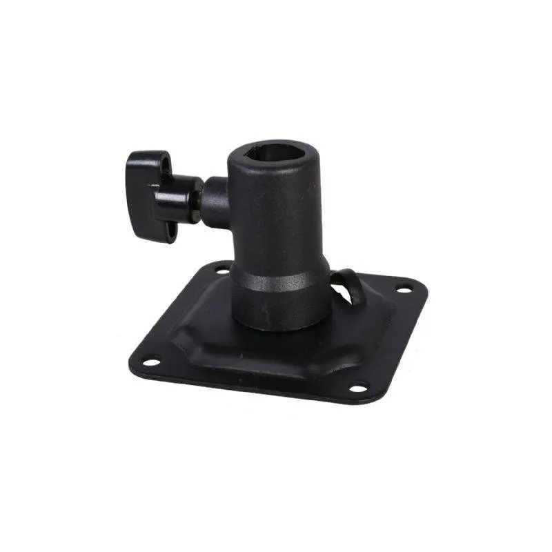 The Falcon Eyes Wall Mount MBH-700 is a mount that you can attach to the ceiling or wall. Using a spigot adapter (not included) you can easily connect accessories that use a spigot, such as a flash or the holder of a reflection screen. The plate that can be attached to the wall or ceiling has a diameter of 8x8 cm and is provided with four holes and a metal ring. You can attach a safety cable to this metal ring that, in the unlikely event that your device falls, is secured by means of the safety cord. The safety lanyard can be found in optional accessories. The plate is made of metal, the spigot holder is made of thick sturdy plastic.