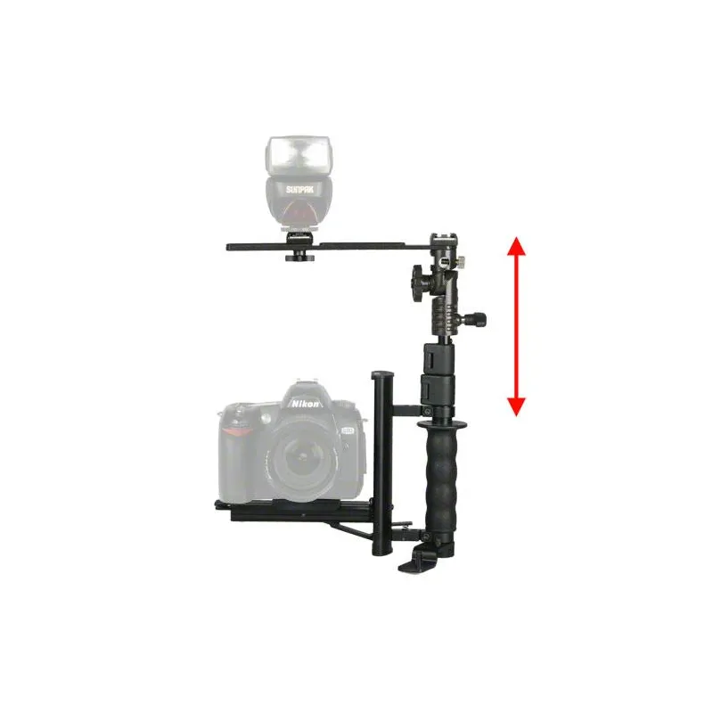 Through this Flip Flash Bracket, the distance between flash device and lens will be increased and therewith the red-eye effect reduced to a minimum. A better illumination of indoor photos and through this a better picture quality is the result of this bracket. Your camera is always fixed securely and portrait format photographies can be realized without problems. Your equipment can be used in an optimal way.