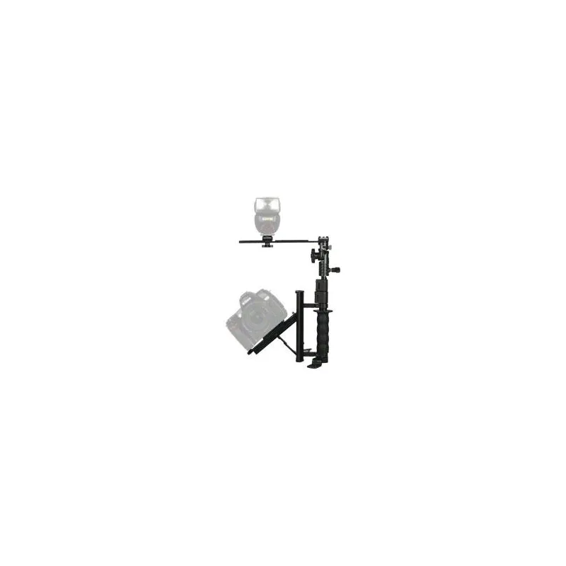 Extra advantage: Through the telescope technique, the Flash Bracket can also be variable used in height. The total weight is well divided onto camera and flash, so that you can take your pictures with one hand easily. A remote control could make this much easier. This article was tested in the magazine “fotoMagazin” (issue 10/10) and was awarded 5 stars (“Super”).
