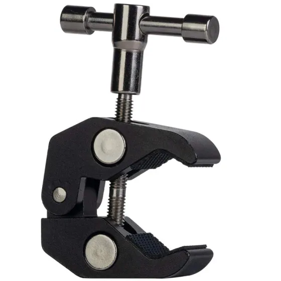 Genesis Gear Magic Arm Super Clamp Clip L izmēra skava ir daudzfunkcionāls rokturis ar plašu pielietojumu klāstu. Skava atradīs pielietojumu, strādājot ar paplašinātu filmēšanas aprīkojumu. Pateicoties tam, papildu piederumu piestiprināšana kļūs daudz vieglāka un drošāka, pateicoties iespīlēšanas spēkam. Stiprinājums ir aprīkots arī ar diviem vītņgriežņiem - 1/4 collu un 3/8 collu, kas ļauj piestiprināt komplektam papildu piederumus.
