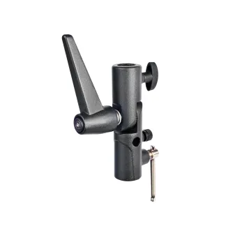 This robust tilt joint is very versatily. At both ends it has a 5/8 opening. Additionally it comes with two spigot adapters . Thus, the tilting joint can be used to flexibly connect two bars, but it can also be put onto a lightstand asa tilt head . Thanks to the spigot adapters with different threads almost any studio accessory can be attached. There is even an umbrella connection .