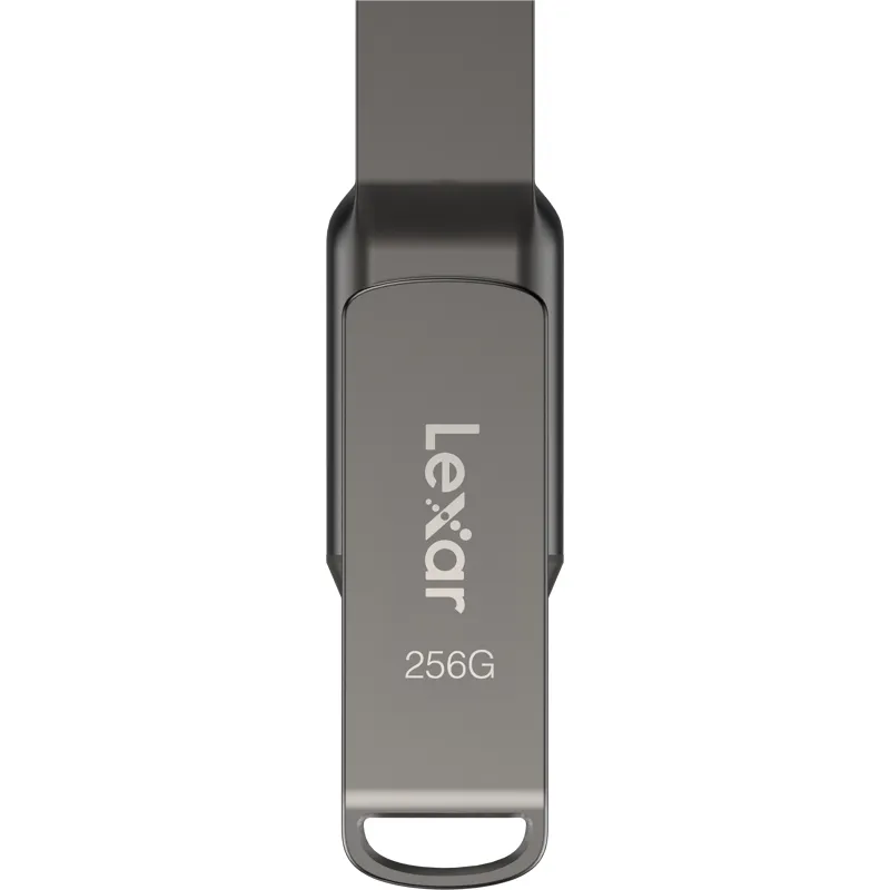 Lexar JumpDrive Dual Drive D400 USB 3.1 Type-CTM ir 2-in-1 zibatmiņas zibatmiņas disks, kas ļauj ērti pārsūtīt saturu starp USB Type-CTM un A tipa ierīcēm. Šim diskdziņam ir stilīgs metāla korpuss un grozāms dizains papildu aizsardzībai, un tas ir tikpat izturīgs, cik ātrs, ar datu pārsūtīšanas ātrumu līdz 130 MB/s.
