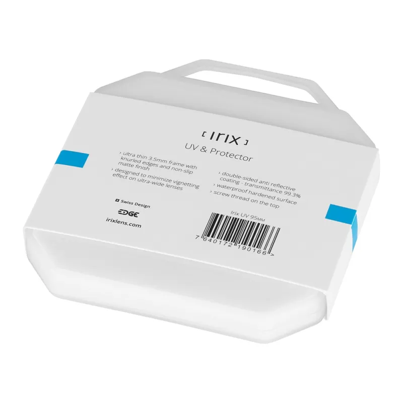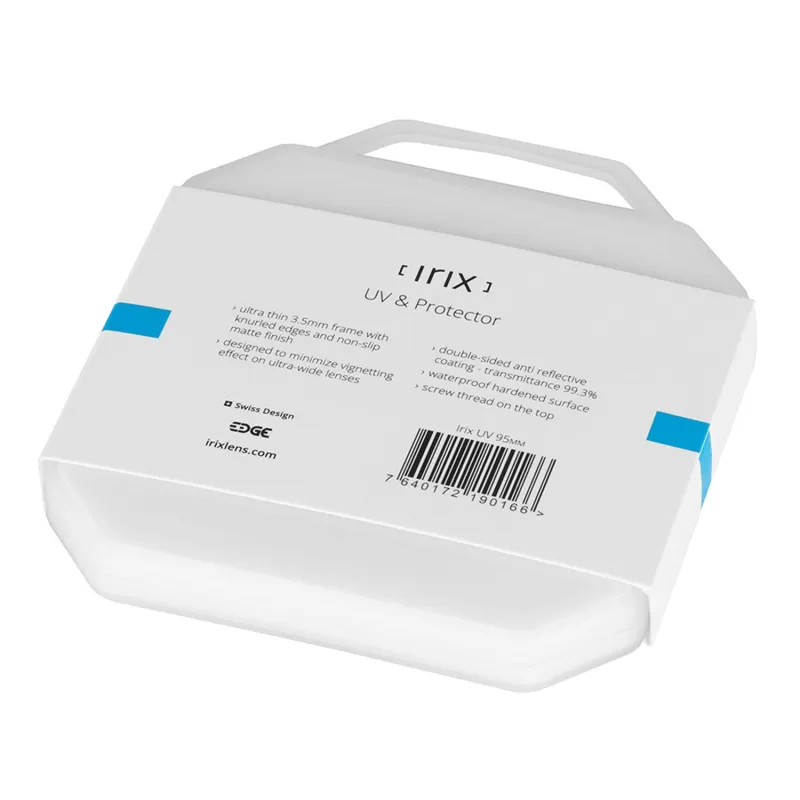 This filter blocks UV light and protects the front lens element from dust and accidental water splashes. This ultra-slim UV filter offers extraordinary light transmission thanks to the high quality optical glass and multi-layer antireflective coating. It's additional waterproof NANO coating helps keeping the glass surface free of stains and water droplets. Irix UV filter also provide decent protection of the front lens under extreme circumstances. Irix UV filter has been designed especially for Irix 15/2.4 lens. It's low-profile frame and knurled edges provide very good grip and functionality with aesthetic design which harmonizes with all Irix products. The glass surfaces of Irix filters are covered by multi-coated antireflection layer that keeps the image clear and full of natural colors. The additional waterproof coating helps keeping the glass surface free of water droplets under rainy weather.