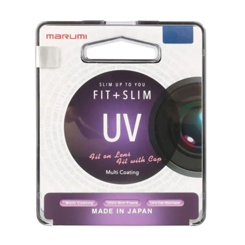 The Marumi Slim Fit UV Filter is an extra thin filter used ideally in conjunction with wide-angle lenses. Compared to a standard 7.2mm thick UV filter, the Marumi slim fit filter is just 5.3mm thick. The filter is made of the same type of glass as the DHG series UV filters and has a UV multi coating, giving the filter extra quality.