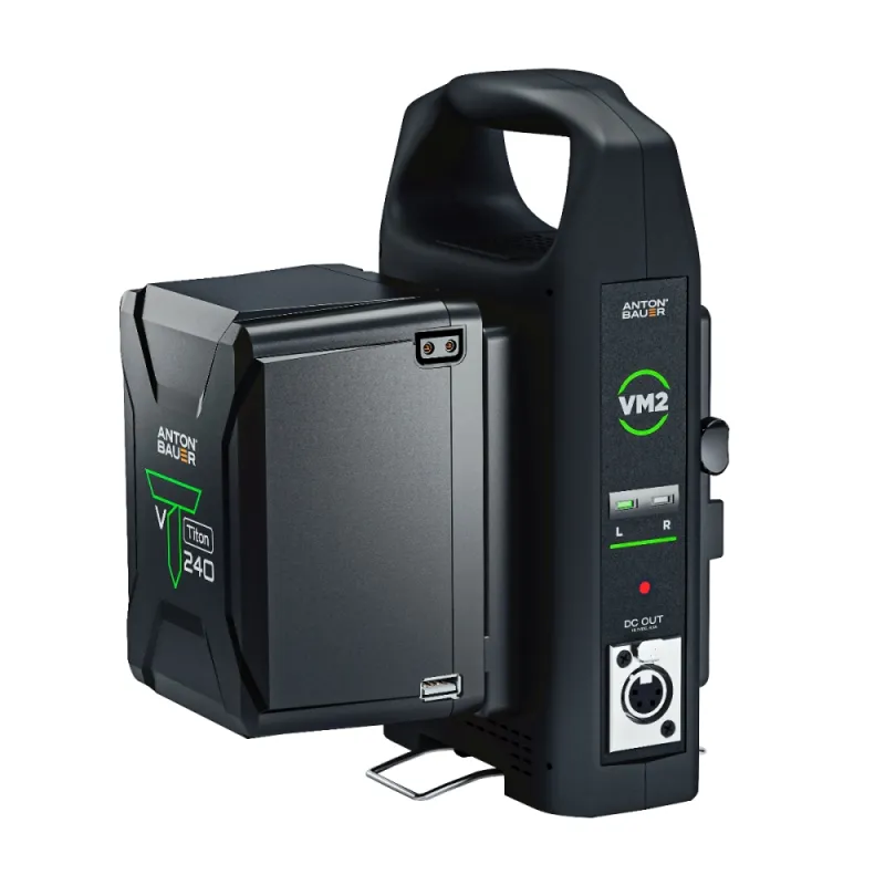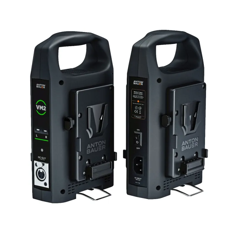 Inteliģenta uzlāde ar jaudu, kas pārsniedz vajadzības. Uzlādējiet divas V-montāžas baterijas vienlaikus, kamēr nodrošināt jaudu kameru piederumiem ar vieglo un portatīvo Anton/Bauer VM2 bateriju lādētāju. Litija jonu baterijas, piemēram, Anton/Bauer GO 90 (98Wh 10A), uzlādējas aptuveni 3 stundu laikā. XLR4 izeja pārvērš AC uz DC jaudu, kad uzlādējat, vai var tikt izmantota, lai piegādātu bateriju jaudu ierīcēm, kurām ir tikai XLR ievade.