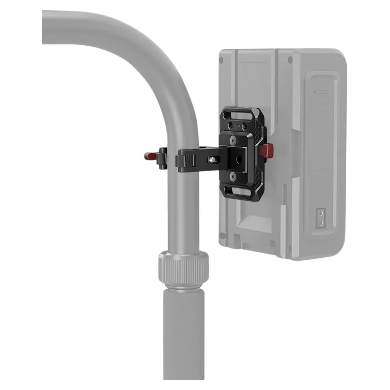 It comes with a crab-shaped clamp that fits rod diameter from 15mm to 30mm to help mount a V mount battery to a tripod, a light stand, or a handheld ring for gimbals.