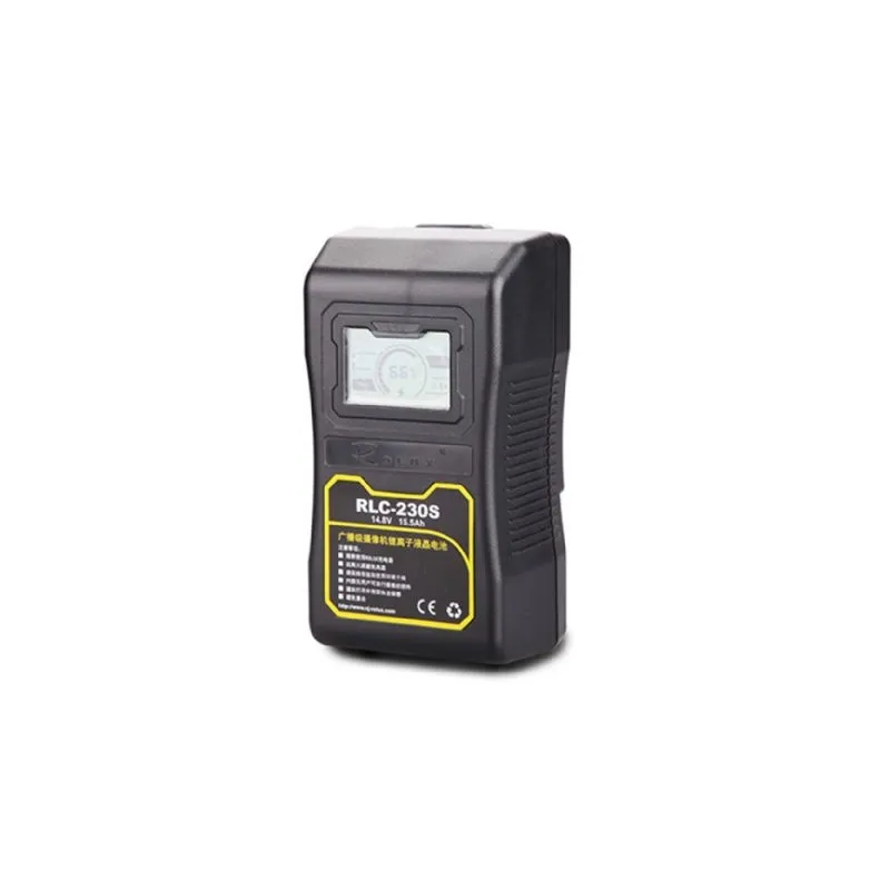 ;The RLC-230S battery is compatible with all electrical devices with a V-Mount connection such as video cameras and LED lights. The difference between this V-mount battery and normal battery is the LCD display which shows you a detailed status of the battery. It displays different things for example; the time it takes to charge a battery when it is connected to a charger, and the estimated remaining time the battery still has.