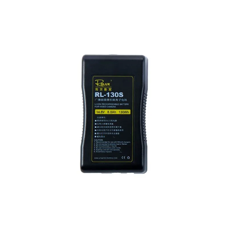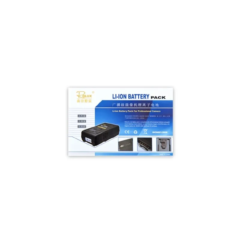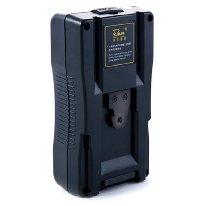 The Rolux V-Mount Battery RL-130S is a Li-Ion battery with a capacity of 9.0Ah and 130Wh. The battery status is displayed by 4 LED indicators on the side of the battery. Battery Charger is not included, but can be found in the optional accessories tab below.