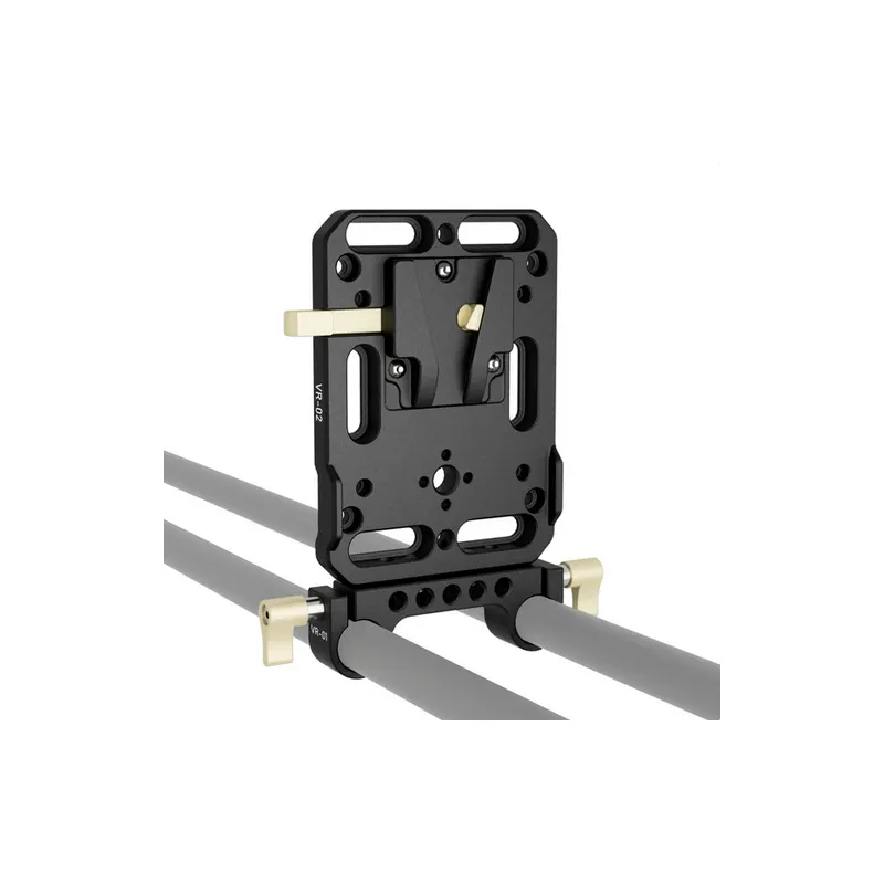 ZGCINE V-Lock Mount Battery Plate ir uzticams risinājums V-montāžas akumulatoru piestiprināšanai kameru rāmjiem. Tam ir ātrās atbrīvošanas sviras, lai nodrošinātu drošu piestiprināšanu, divas 15mm stieņu skavas stabilitātei un vairāki montāžas punkti aksesuāru integrācijai.