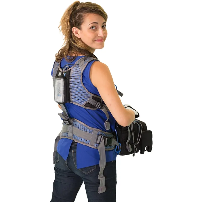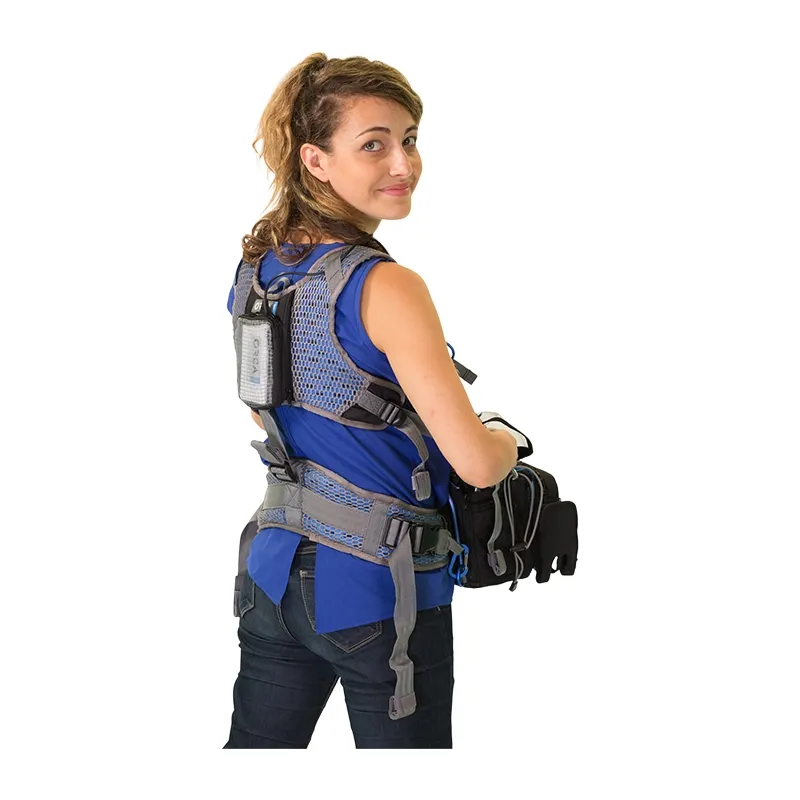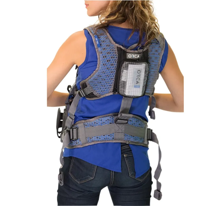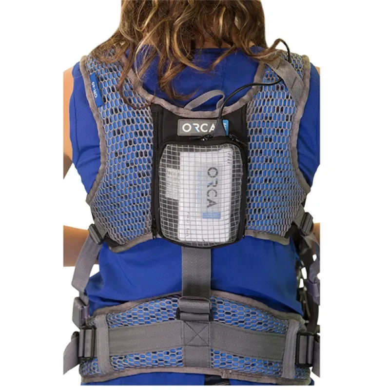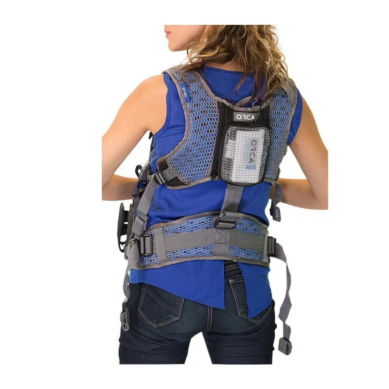 The lightweight, ventilated Orca OR-40 Sound Bag Harness can be connected to any Orca audio bag to relieve equipment weight while recording.