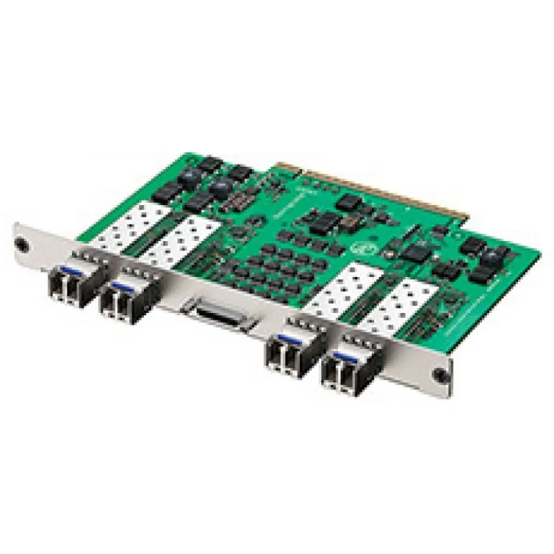 Includes 4 inputs and 4 outputs plus 4 deck control, re-clocking and SD, HD and 3 Gb/s. 1310 nm laser drivers and receivers up to 25 km at 3 Gb/s.
