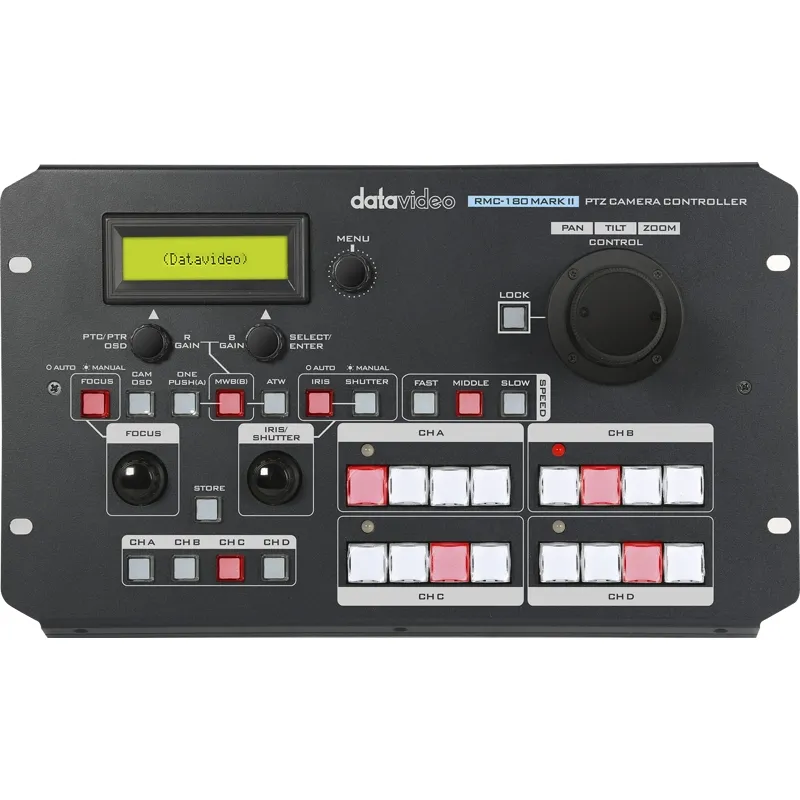 Ergonomisks džojistiks un taustāms pogu izkārtojums ļauj viegli iestatīt un kontrolēt līdz pat četrām Datavideo PTZ kamerām un robotizētām pagriešanas/noliešanas galviņām jebkurā tiešraides scenārijā.