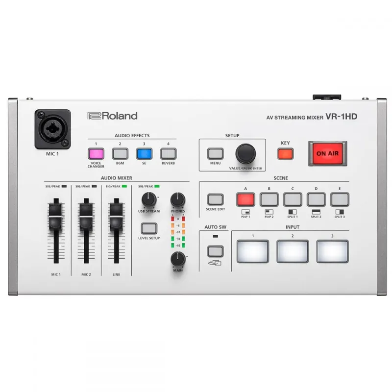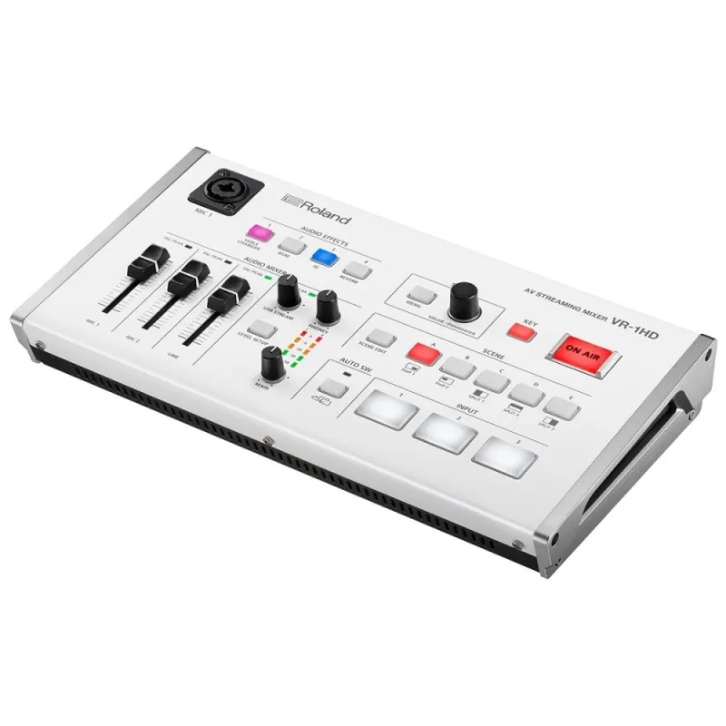 The VR-1HD has three “worry-free” HDMI inputs, and each one accepts a variety of HD and computer-based video resolutions. This lets you connect, switch and stream different sources including cameras, presentations, gameplay and even smartphones and tablets without having to think about it. The audio from these sources can be blended with the two studio-quality XLR microphone inputs and dedicated line input. Best of all, as the VR-1HD is designed for live broadcasting, its dedicated controls and top-mounted mic input (with gooseneck mic) let you go hands-free and headset-free while livestreaming.