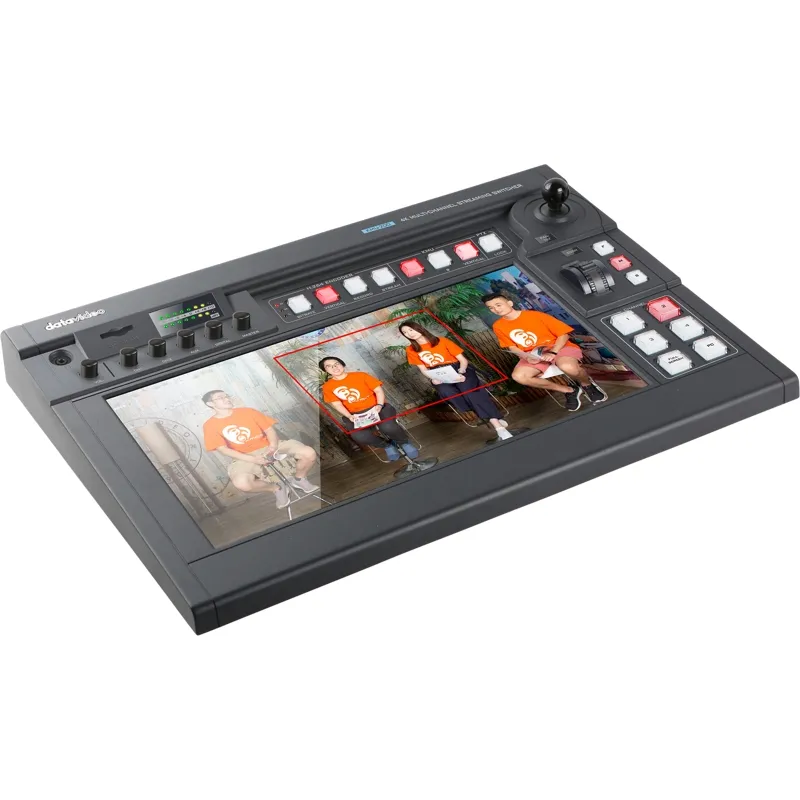 KMU-200 is an all-in-one solution for producing full HD virtual multi-camera video using a single 4K camera. KMU-200 uses a large touch screen for operation using similar gestures used on any tablet or phone. By pinching and swiping, you control up to 4 cutouts of a 4K image and as if the footages comes from 4 different cameras. Use hardware control to precisely position the cutouts like a regular PTZ camera.