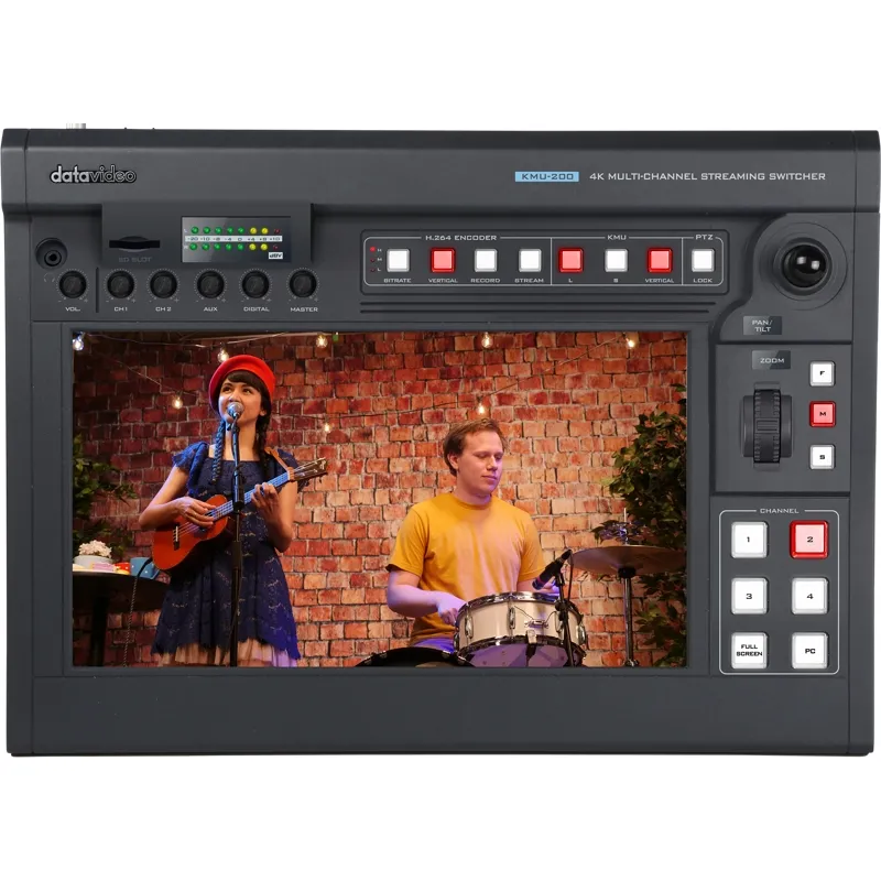 KMU-200 features a dual streaming encoder making it possible to go live on all the well known streaming platforms directly from the device. Easily record on SD cards and you can directly bring the recording to your favorite editing suite. KMU-200 allows you to produce virtual multi-camera videos easily without any help.