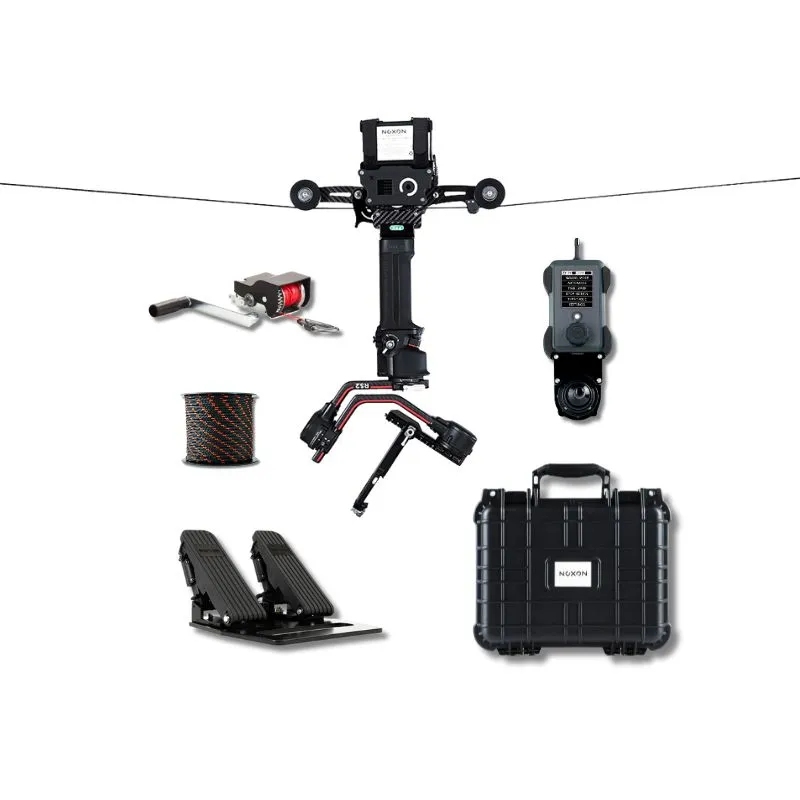 Portable Wirecam - Ultimate Kit ir profesionāla kabeļkameru sistēma, kas ir ideāli piemērota video straumēšanai koncertos un pasākumos. Tās izturīgā nerūsējošā tērauda un alumīnija konstrukcija atbalsta līdz 6kg aprīkojuma, ar ātrumiem no 5mm/s līdz 2200mm/s. Šajā komplektā ir iekļauts