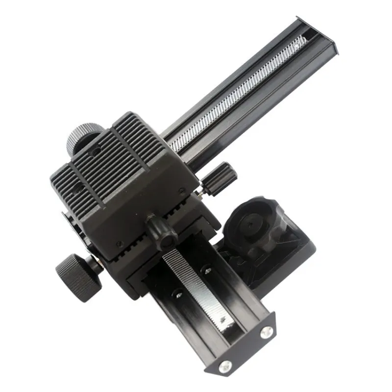 Caruba statīva galvas slīdnis — 4 ceļi nodrošina vienmērīgu un precīzu DSLR fokusu. Slīdņa sliedes ir aprīkotas ar izgudrojošu piedziņas sistēmu, kas uzlabo fokusēšanas precizitāti un ātrumu. Regulēšanu var veikt četros virzienos: pa labi, pa kreisi, uz priekšu un atpakaļ.