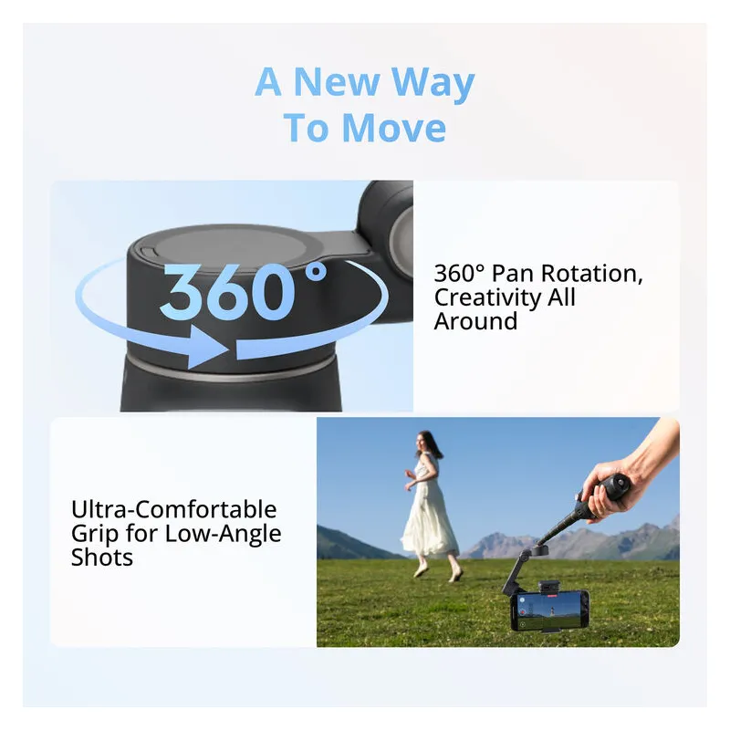 Papildus parastajām DJI panoramēšanas/slīpuma sekošanas režīmiem un SpinShot, Osmo Mobile 8 piedāvā arī inteliģentas filmēšanas režīmus paplašinātai skatīšanai. Jūs varat izmantot