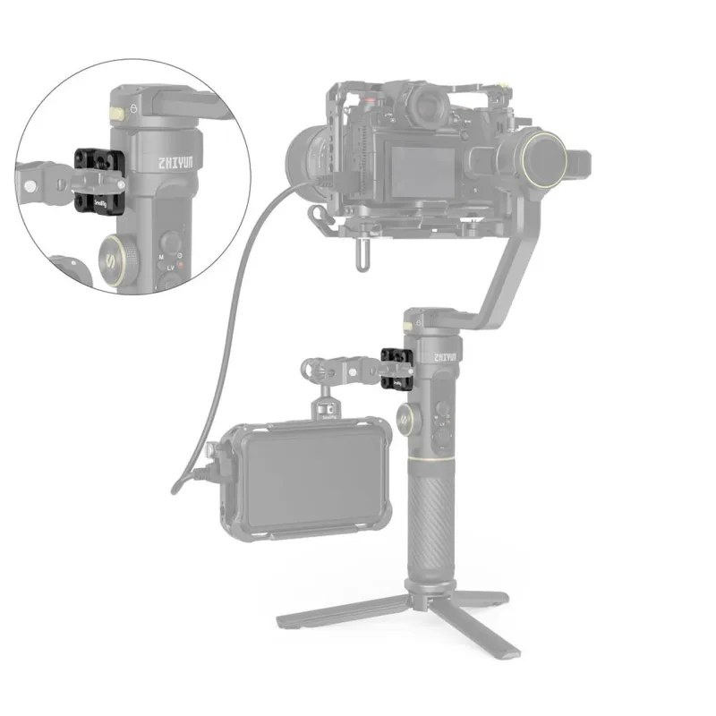SmallRig Side Mounting Plate for ZHIYUN CRANE 2S Handheld Stabilizer 2995 is designed to boost your options for adding accessories to your CRANE 2S setup. This mounting plate locks onto the side of the gimbal via a captive 1/4"-20 screw and integrates rosette to prevent twisting. Featuring four 1/4"-20 threaded holes and an ARRI 3/8"-16 locating hole which enables you to mount a wide range of accessories, such as the separately available Cold Shoe 2260 and Magic Arm 2115 to add attachments such as a monitor or sound receiver. The integrated NATO rail is designed to mount a Magic Arm 2071 to quickly release your monitor.