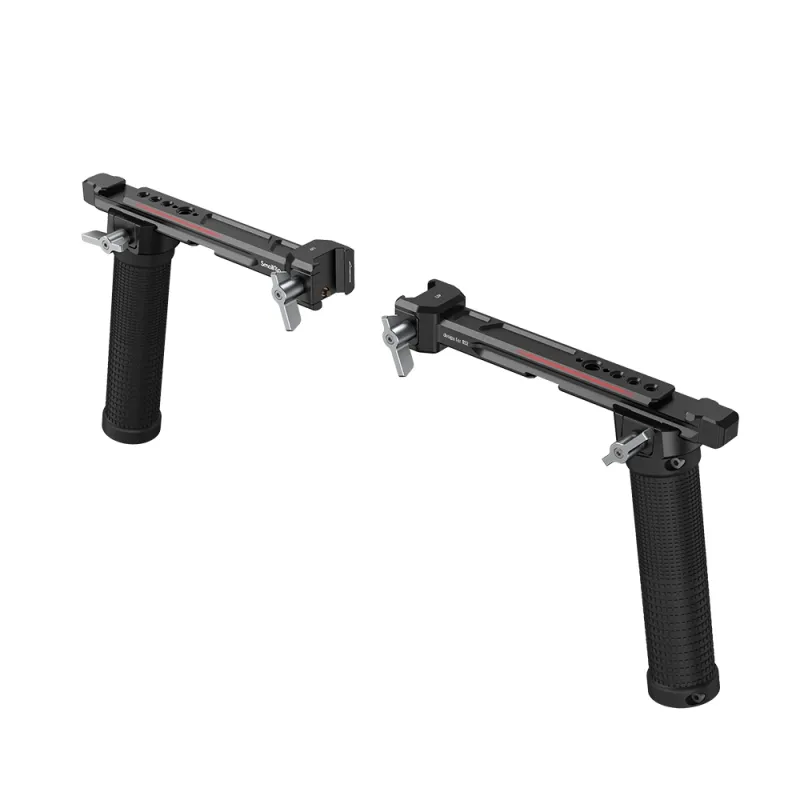 SmallRig Dual Handgrip for DJI RS 2 / RSC 2 / RS 3 / RS 3 Pro 3027 is designed to reduce arm fatigue during shooting and provide rich accessories mounts. It secures to the NATO rail on each side of the gimbal, easy for detachment and time-saving. The handgrip is designed with two-side NATO rails, which is not only horizontal adjustable, but also easy for detachment and support shooting in inverted mode. Built-in multiple 1/4”-20 and ARRI 3/8”-16 threaded holes can attach Magic Arm 2115 for monitor. Cold shoe ports can be used for Monitor Mount 2905, wireless go, microphone, sound receiver, etc. It disassembles into four part for easy storage and transport.