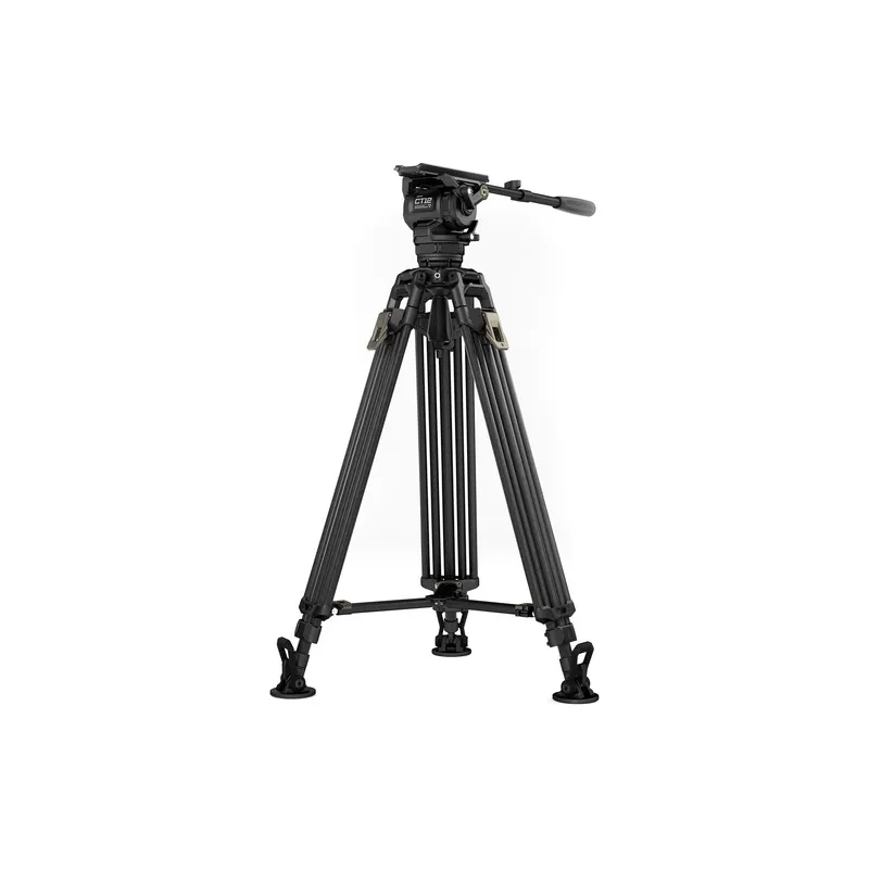 The Tilta 75mm Cine Fluid Head with 2-Stage One Touch Carbon Fiber Tripod Legs in Space Gray offers professional-grade stability and versatility for filmmakers. It features a 100/75mm 2-stage carbon fiber tripod with one-touch locks for quick setup. The 75mm cine fluid head supports a counterbalanced payload of 2.2 to 26.5 lb with 10-step dynamic counterbalance and 8-level pan/tilt fluid drag settings. A Manfrotto-type quick release plate facilitates rapid camera mounting, while the tripod extends from 2.5 to 5.4 feet in height. Additional features include an illuminated bubble level and a pan handle for smooth operation, supporting +90/-60 tilt and 360 panning.