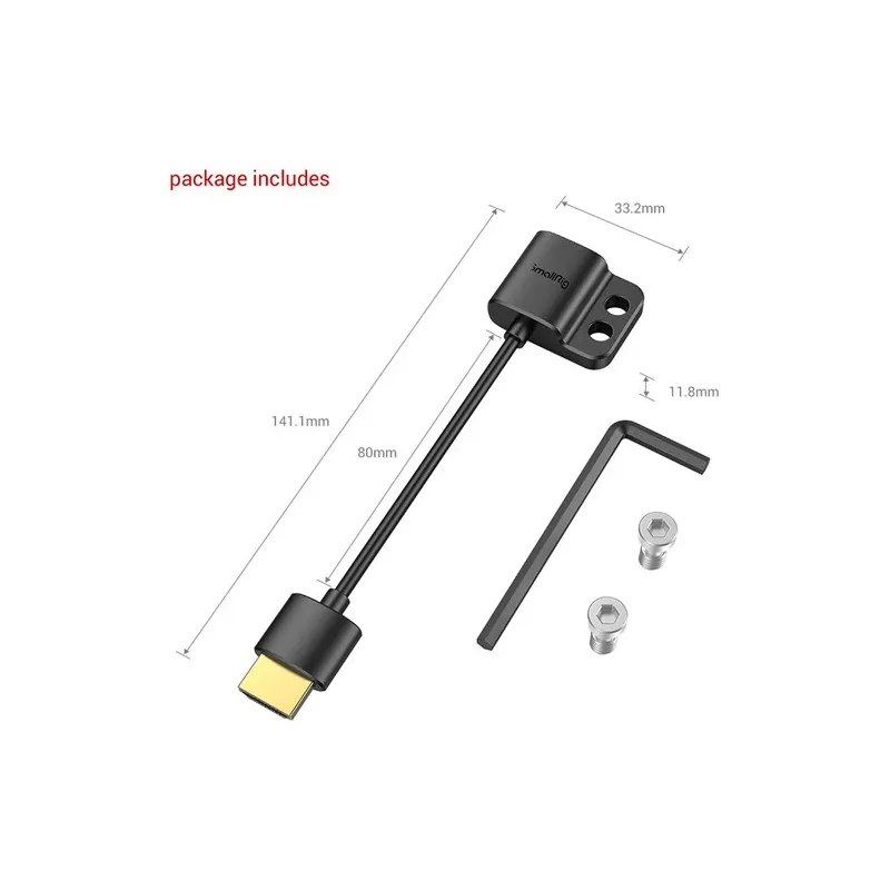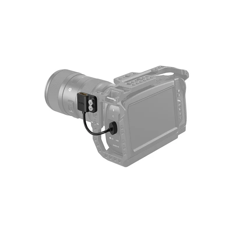 Izmantojiet HDMI A tipa kabeli kopā ar kameras korpusu vai iekārtu, izmantojot šo SmallRig īpaši plāno HDMI A tipa HDMI A tipa adaptera kabeli. Adaptera kabeļa vienā galā ir sieviešu HDMI A tipa savienotājs un otrā galā ir A tipa HDMI savienotājs, lai tas būtu piemērots dažādām kamerām.