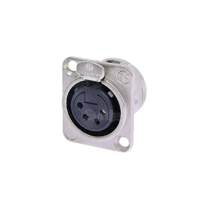 Neutrik NC4FD-L-1 - 4 pole female receptacle, solder cups, Nickel housing, silver contacts Universal D-size metal body XLR panel mount series. UL recognized component.