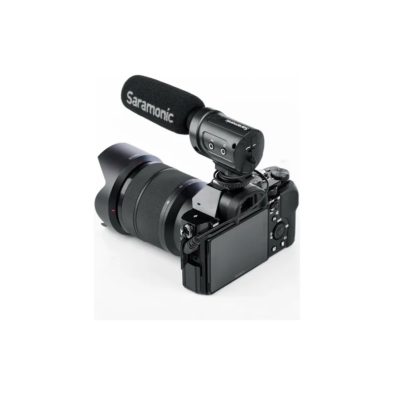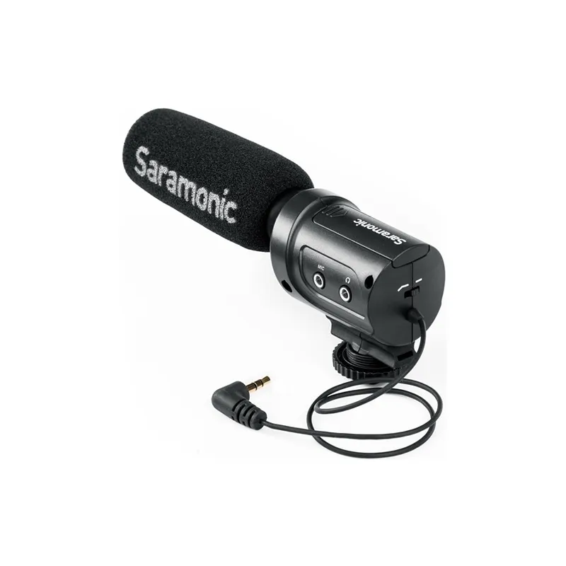 Saramonic SR-M3 ir kompakts kondensatora virzītais mikrofons. SR-M3 novietojiet uz kameras mikrofona uzgaļa un ievietojiet kamerā 3,5 mm kontaktdakšu. SR-M3 nodrošina, ka jūs reģistrējat vispārējo apkārtējās vides skaņu augstā kvalitātē. Komplektā iekļautais vēja pārsegs nodrošina, ka jūs varat fotografēt bez trokšņiem arī ārpus telpām. Papildus hot shoe savienotājam apakšā ir arī 1/4 iekšējā vītne.
