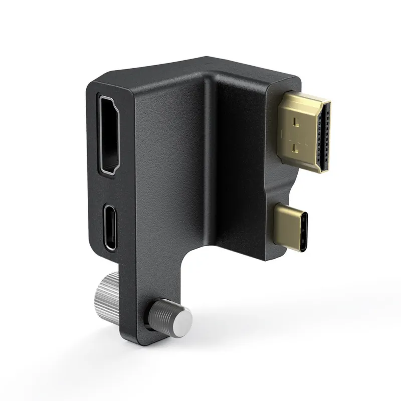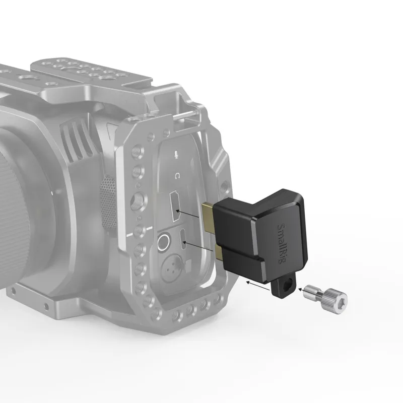 SmallRig HDMI & Type-C Right-Angle Adapter for BMPCC 4K Camera Cage AAA2700 is specially designed for SmallRig camera cage and L bracket for BMPCC 4K like 2203,2203B,CVB2254,CVB2254B,CVB2255,CVB2255B and 2766. It’s the perfect adapter used to change the direction of the HDMI and Type-C ports to the screen. It features a thumbscrew to fix the adapter to the side of the camera cage tightly, and ensure a more stable connection. The 2 in 1 HDMI and Type-C adapter takes up very little space and won’t affect the use of other interfaces.