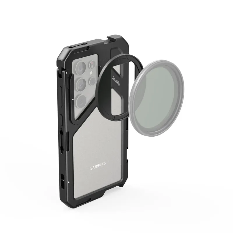 SmallRig 4601 Samsung Galaxy S24 Ultra Cage Kit ir daudzfunkcionāls mobilā tālruņa būris, kas īpaši izstrādāts Samsung Galaxy S24 Ultra, lai nodrošinātu augsta līmeņa video ierakstīšanu, tiešraidi un vlogošanu.