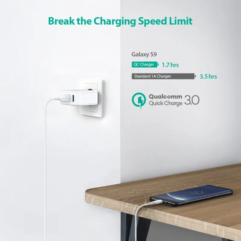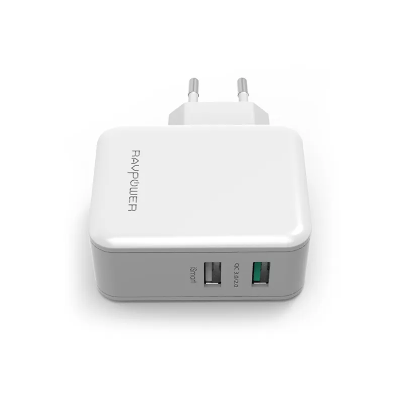 Quick Charge 3 - The World’s Fastest Charging Qualcomm’s newest charging technology provides up to 4x faster speeds than standard chargers, meaning it takes only 35 minutes for compatible devices to go from 0% to 80% power. Along with its new INOV (Intelligent Negotiation for Optimum Voltage) technology and backwards compatibility with Quick Charge 2.0 devices, there is no faster option for mobile power charging. Maximum Compatibility with Maximum Power Aside from Quick Charge devices, this wall charger also keeps normal devices powered up at full speed. The dual-port USB design includes a powerful 12V/2A charging port and another high-speed 5V/2.4A port, making it perfect for everything from smartphones to tablets to other USB-powered devices. RAVPower iSmart Charging Technology Exclusive from RAVPower, both ports include iSmart charging technology which automatically detects a connected device, identifies the charging input, and then matches the devices with its required current. This process optimizes the charging experience for the fastest charging every time. Quick Charge Compatible Models: Samsung Galaxy S7 / S6 / S6 Edge / Edge Plus, Note 5 / Note 4 / Edge Google Nexus 6 Motorola Droid Turbo, Moto X 2014 Sony Xperia Z4 / Z4 Tablet, Z3 / Z3 Compact / Z3 Tablet Compact LG G4, LG G5, LG G Flex2, LG V10 HTC One M9 / M8, HTC Desire Eye, HTC One remix Xiaomi Mi3, Mi4, Mi Note, and more Asus Transformer T100, Asus Zenfone 2 ZTE Axon Pro Yota Phone 2