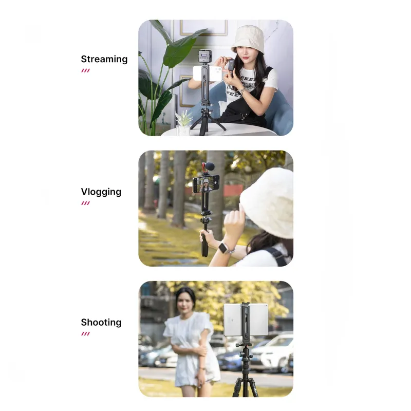Izmantojiet Ulanzi U Pad II viedtālruņa & planšetdatora skavu mobilajai fotografēšanai, vlogošanai vai tiešraidei. To var izmantot ar dažādiem statīviem, jo pamatnei ir Arca tipa stiprinājums un 1/4 vītnes savienojums. Ar spiedpogu regulējamā apakšējā skava un atsperes augšējā skava ļauj šim turētājam turēt viedtālruņus vai planšetdatorus, kuru platums ir no 6,5 līdz 26 collas.