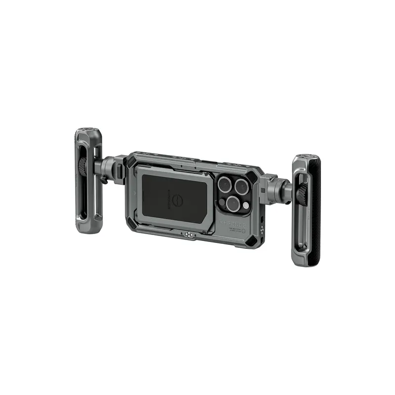 Tilta Khronos iPhone 15 Pro Lightweight Kit in Space Gray ir pielāgots mobilajiem filmēšanas entuziastiem. Komplektā ir Khronos iPhone 15 Pro futrālis un regulējams rokturis, un šis komplekts nevainojami iekļaujas Khronos piederumu ekosistēmā. Ar izturīgu 4 skrūvju korpusu un fiksējošu skavu ar 9 stiprinājuma punktiem jūsu iPhone 15 ir droši aizsargāts. Turklāt elektroniskie kontakta punkti atvieglo strāvas padevi, savukārt regulējamais rokturis nodrošina daudzpusīgu augstuma regulēšanu un pagriešanu 180 grādu leņķī. Izstrādāts ar 1/4-20 vītni un ērtu silikona rokturi, šis komplekts nodrošina ērtības un elastīgumu jūsu filmēšanas darbos.