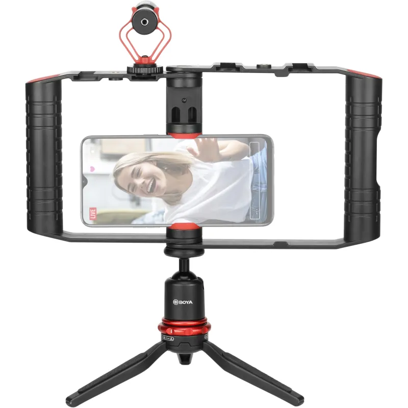 BOYA BY-VG380 is an all-in-one smartphone video kit that compatible with iOS and Android devices, It's well-suited for vlogging,podcasting, recording at home,and more. It adds all the accessories needed to create the broadcast quality to your phone no matter you are indoor or outdoor.